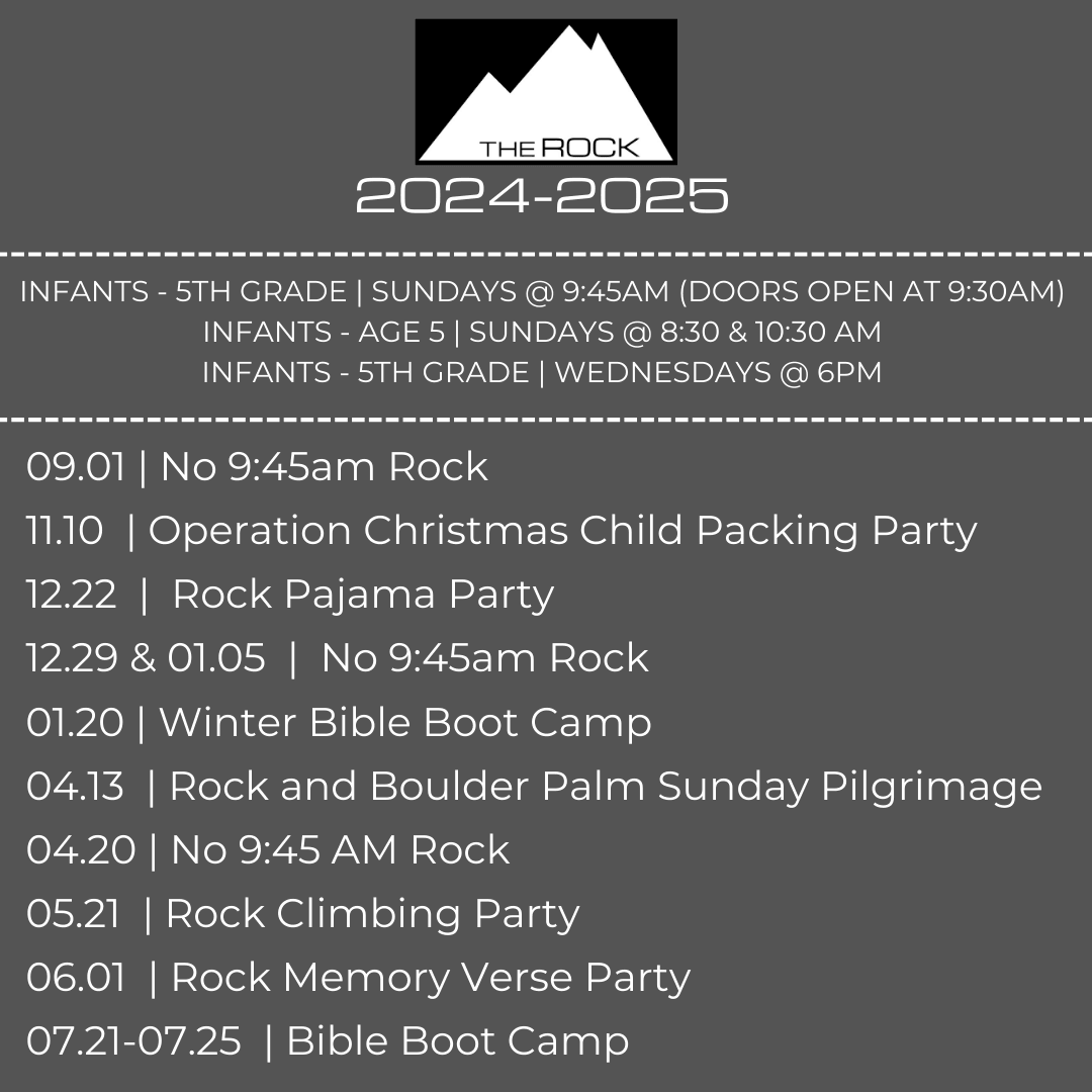 Kids matter to God. At The Rock, we help your kids meet Jesus as kids. Each week we create an environment that uncovers how great God is, and how your child can follow him.